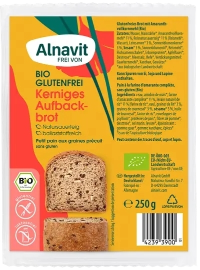 Painea fara gluten cu multicereale Alnavit este o paine usoara, pufoasa, bogata in fibre, realizata cu aluat din orez si faina de amarant integrala. Ambalajul individual face posibil pastrarea painii un timp destul de indelungat.