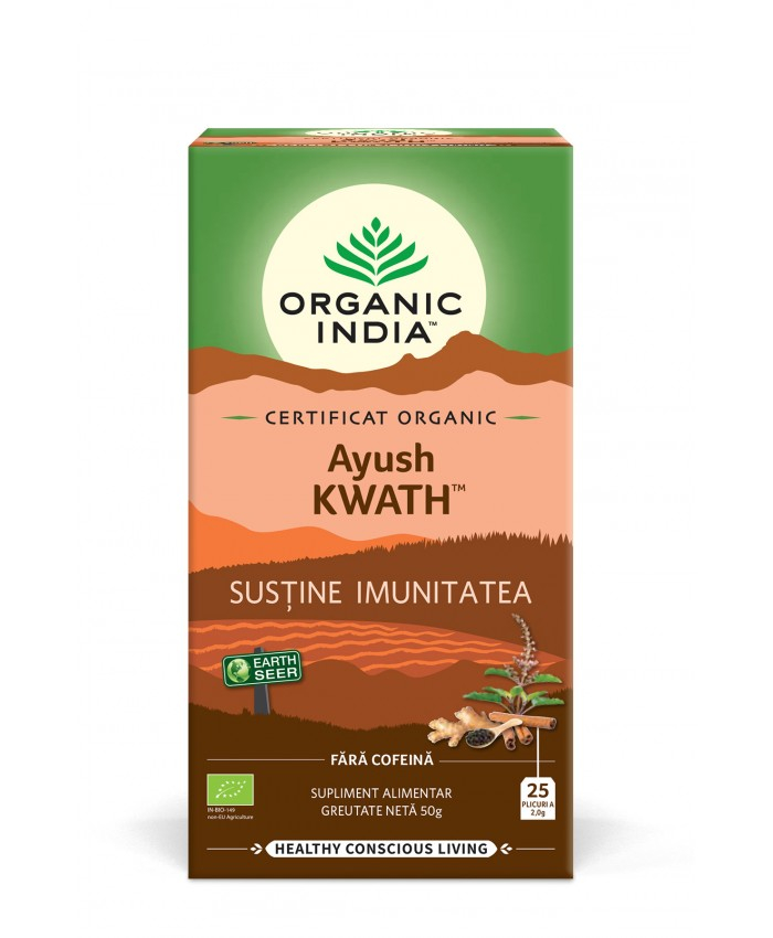 ORGANIC INDIA Ceai Tulsi (Busuioc Sfant) Ayush Kwath, Sustine Imunitatea este: