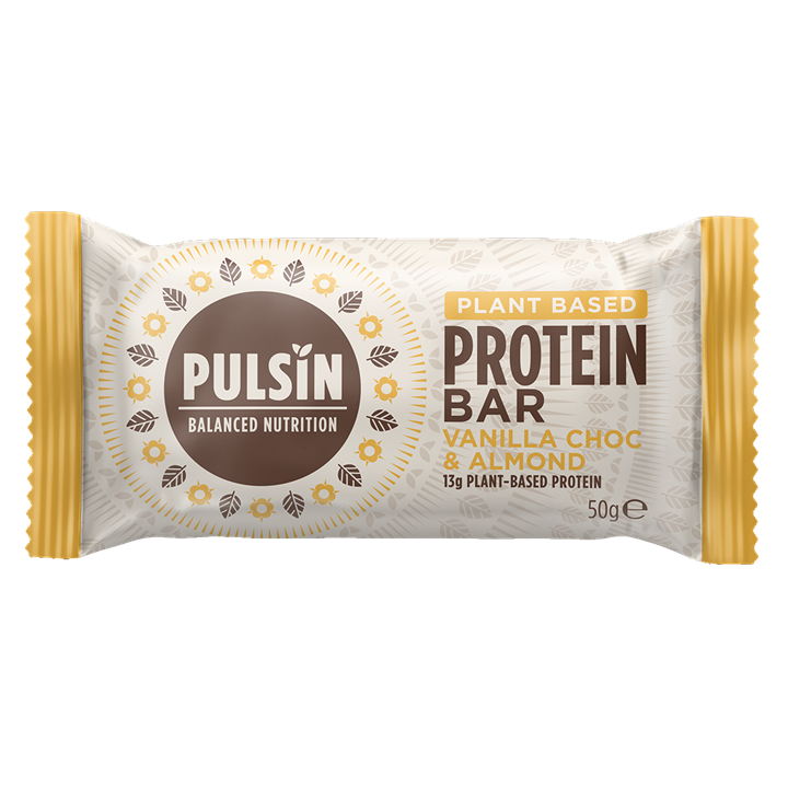 Baton Proteic cu Ciocolata, Vanilie si Migdale PULSIN 50g Acest baton proteic delicios cu Vanilie, Ciocolata si Migdale are un gust de prajitura și o textura plina de chips-uri de ciocolata și bucăți de migdale crocante. Cu amestecul perfect de orez și proteine din mazăre care oferă toți aminoacizii necesari, acest baton proteic cu conținut scăzut de zahăr este alegerea ideală pentru cei care caută un suport energetic delicios. Contine 13g de proteine pe bază de plante si este o gustare sănătoasă inainte sau dupa exercițiul fizic intens sau pentru a vă menține energizat între mese.