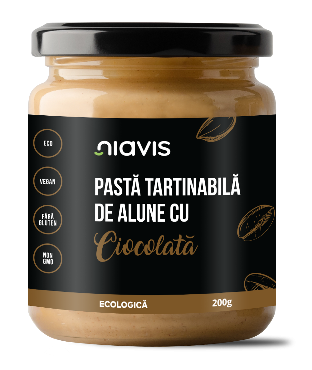 Ingrediente: pasta de alune(53%), zahar de trestie(32%), cacao boabe (10%), cacao pulbere (5%)*