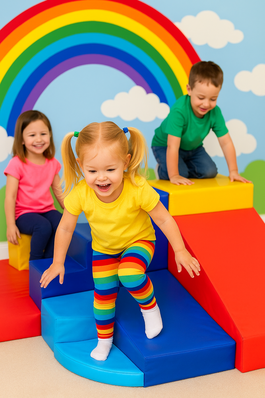 Fiecare element al acestui set colorat – de la trepte, la rampa de urcare și platformele de echilibru – contribuie la întărirea mușchilor mari, coordonarea mișcărilor și echilibru. Copiii învață să se cațere, să sară și să își controleze corpul în mod natural și distractiv.