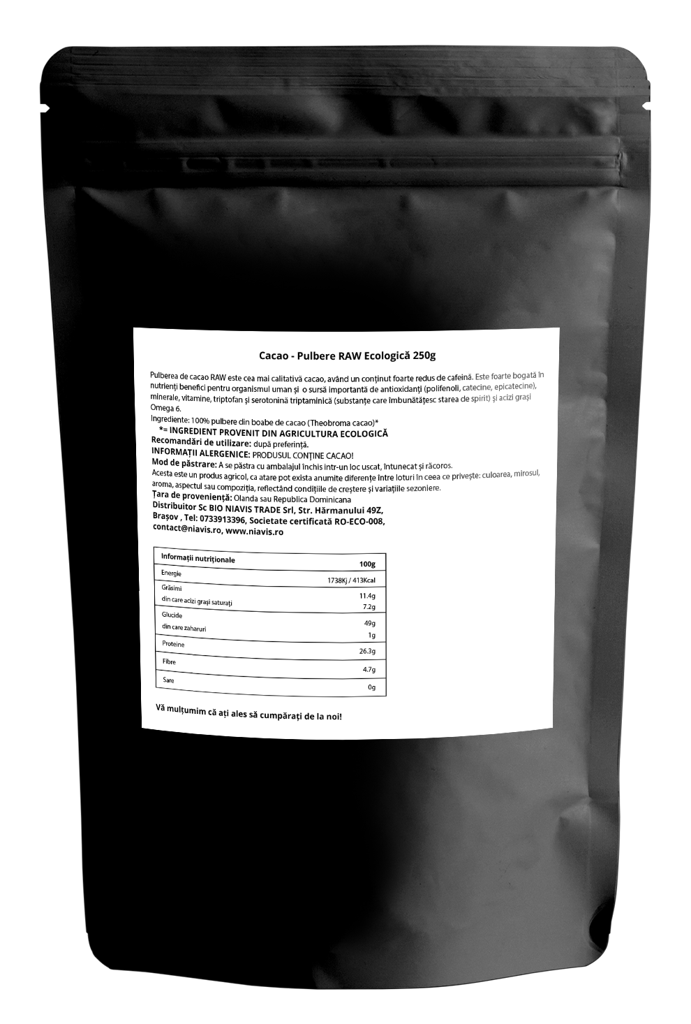 Cacao Pulbere RAW Ecologica/Bio 250g