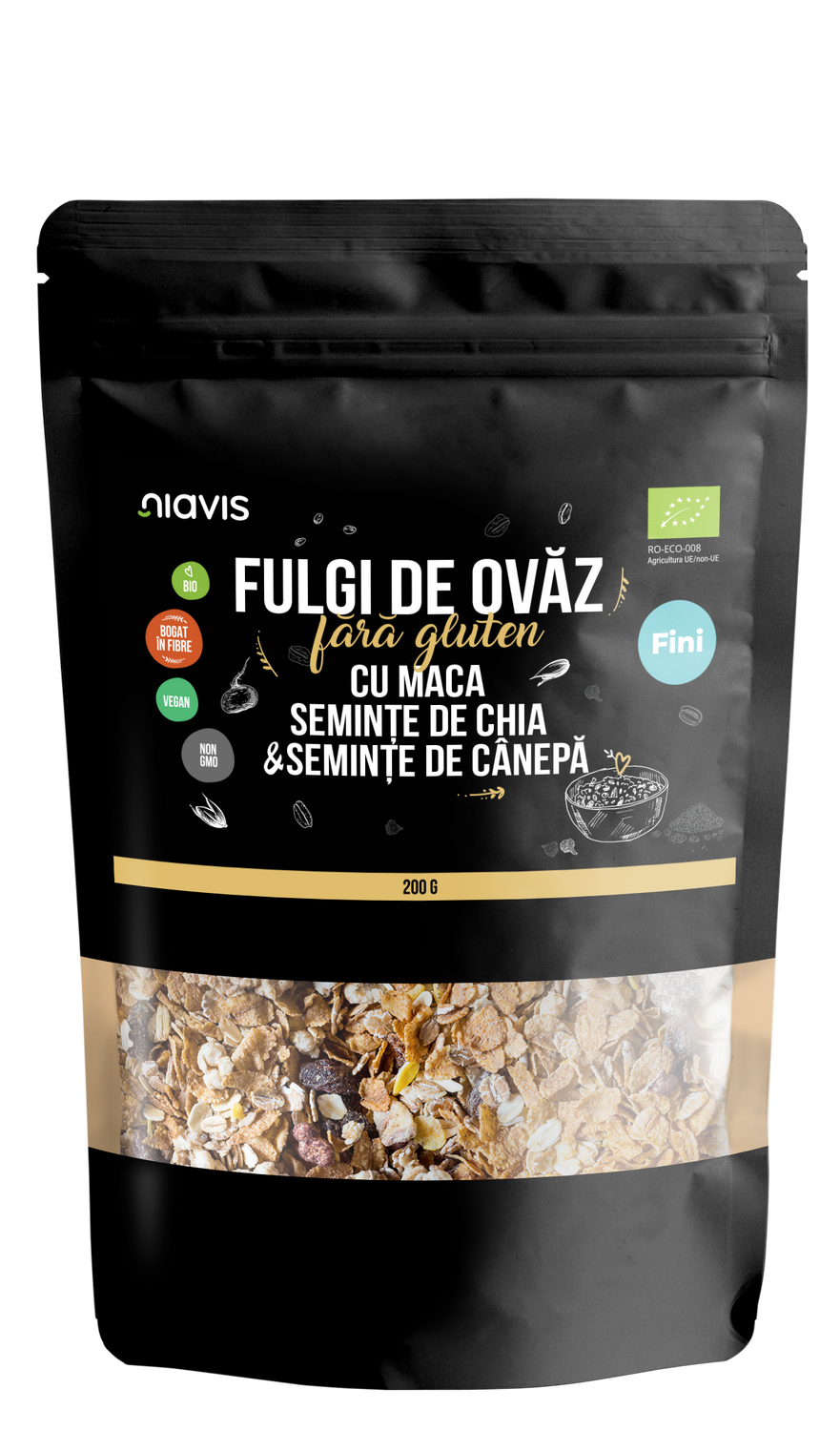 Fulgi de Ovaz Fini Fara Gluten cu Maca, Chia si Seminte de Canepa Ecologici/Bio 200g