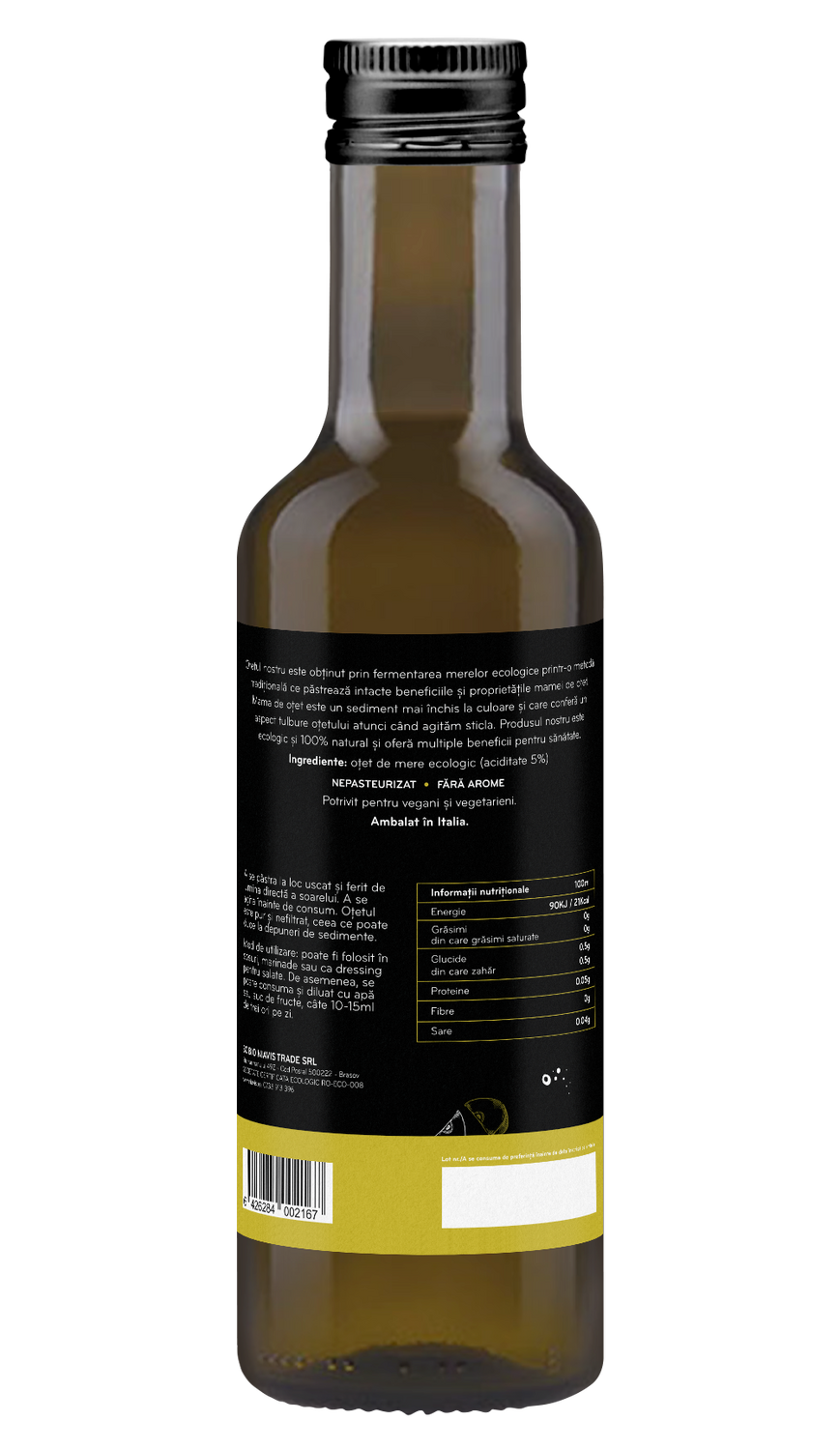 Otetul nostru este obtinut prin fermentarea merelor ecologice printr-o metoda traditionala, ce pastreaza intacte beneficiile "mamei de otet".