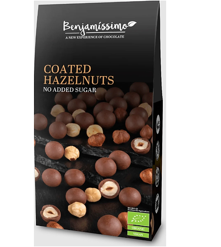 Alune prajite delicioase si organice acoperite cu ciocolata Praline de la Benjamissimo. Gustari crocante care fascineaza cu un gust si o aroma irezistibile. Fara adaos de zahar si cu indulcitor natural eritritol.