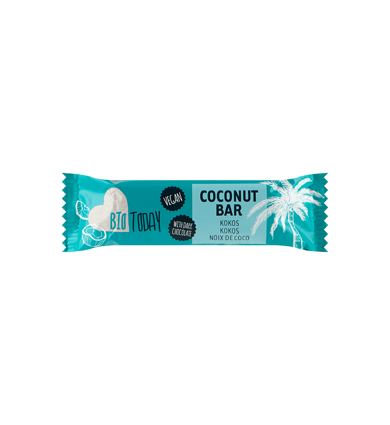 Cu batoanele BioToday te poti bucura de o gustare responsabila oricand si oriunde. Acest baton fara gluten va ofera senzatia suprema de recompensa! Batonul cu nuca de cocos este indulcit cu zaharuri nerafinate si acoperit cu ciocolata neagra. Aceasta ciocolata este indulcita cu zahar nerafinat din floare de cocos si nu contine lapte, facand batoanele potrivite pentru vegani!