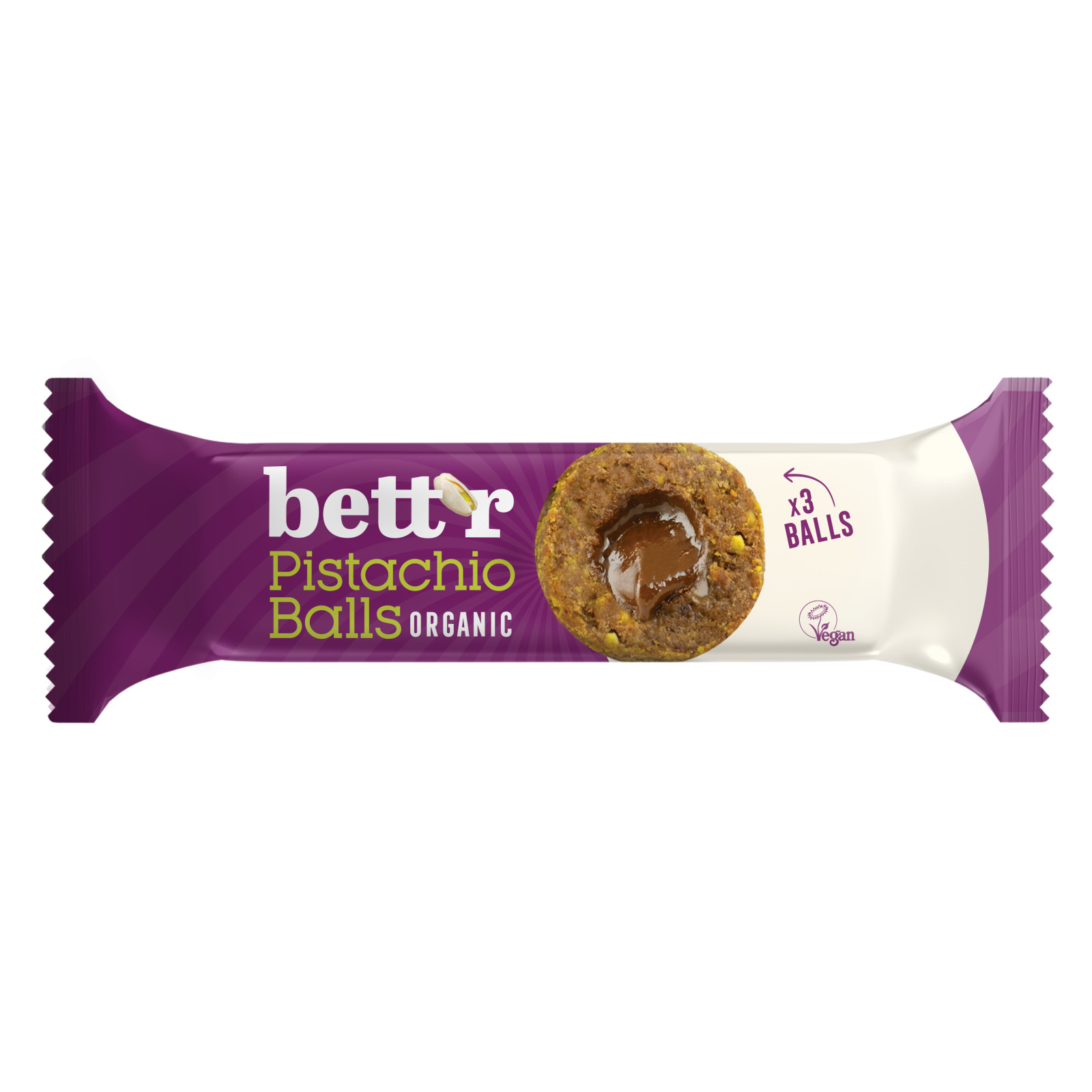 Bilutele cu umplutura de fistic sunt bio, vegane, gluten free, fiind o gustare originala pe care sa o ai mereu cu tine la scoala, la munca sau in calatorii. Acestea combina perfect fructele uscate si nucile, lasandu-ti simturile uluite, iar placerea este tripla, cu cate 3 bilute in fiecare pachet!