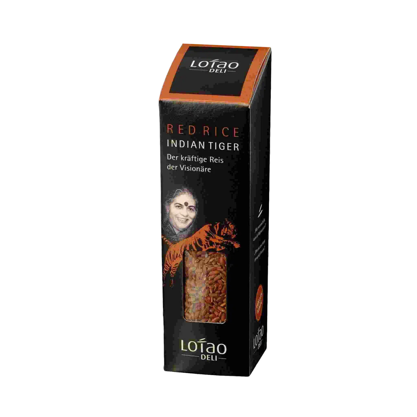 Orezul rosu Lotao, aduce o evidentiere de culoare si gust fiecarui fel de mancare cu culoarea inchisa si aroma sa puternica. Perfect pentru toti cei care cauta ceva special si se bazeaza pe naturalete. Orezul isi datoreaza culoarea rosie regiunii de crestere, deoarece natura argilosa a boabelor face coaja rosie, in timp ce interiorul ramane alb. Acest mediu nutritiv furnizeaza cerealele cu fibre valoroase, proteine si acizi grasi nesaturati. Indian Tiger, un orez rosu puternic, granulat, este ideal ca pilaf, ca salata de orez, ca garnitura clasica de orez sau servit cu preparate consistente din carne.