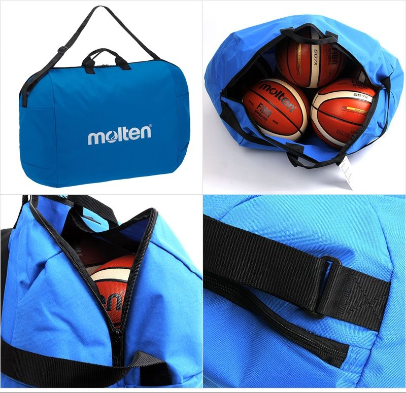 Geanta Molten EB0046-B Geanta Molten pentru 6 mingi (baschet, bine inteles fotbal, volei sau handbal), incapatoare si foarte rezistenta, curea de umar ajustabila. Geanta este ideala pentru transpotrul mingilor, accesorilor pentru antrenament, la terenul / sala de sport. Specificatii: Geanta pentru transport mingi Capacitate: 6 mingi baschet Molten! (numarul 7, in consecinta intra lejer 6 mingi marime 6 si 5) Dimensiune: 780 x 510 x 270 mm Culoare: albastru, argintiu Curea de umar ajustabila Cod produs: EB0046-B Puteti comanda produsul: Online Prin email la adresa contact@dralefit.ro Telefonic la unul din numerele afisate la contact Folosind chat-ul Cod produs: AS-EB0046-B