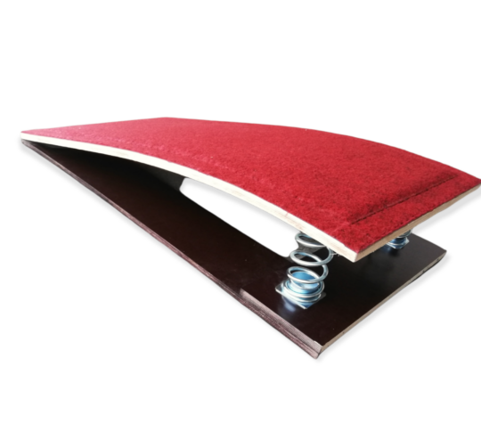 Trambulina gimnastica cu arcuri necapitonata Fabricata din placaj stratificat curbat vopsit cu lac ecologic pe baza de apa. Suprafata de contact este tapitata cu polietilena si acoperita cu mocheta. Echipata cu arcuri din otel, nichelate. Dimensiuni: L: 120cm x l:60cm x h:22cm Puteti comanda produsul: Online Prin email la adresa contact@dralefit.ro Telefonic la unul din numerele afisate la contact Folosind chat-ulCod produs: PS30256